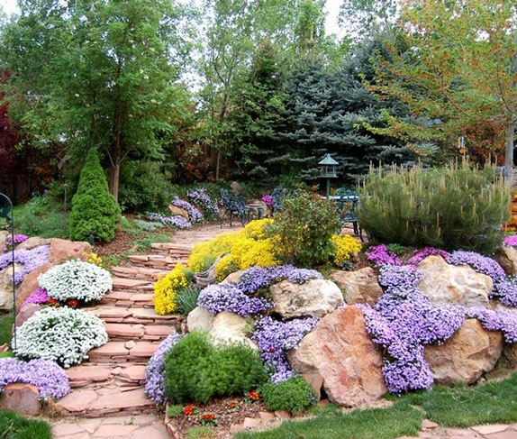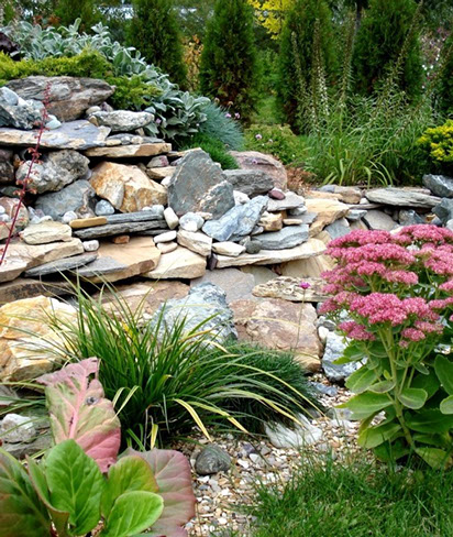 Ваша альпийская горка может быть садом камней, пологим альпинарием или даже рокарием с широкими террасами, но суть ее останется прежней – гармоничная композиция из камней и растений.